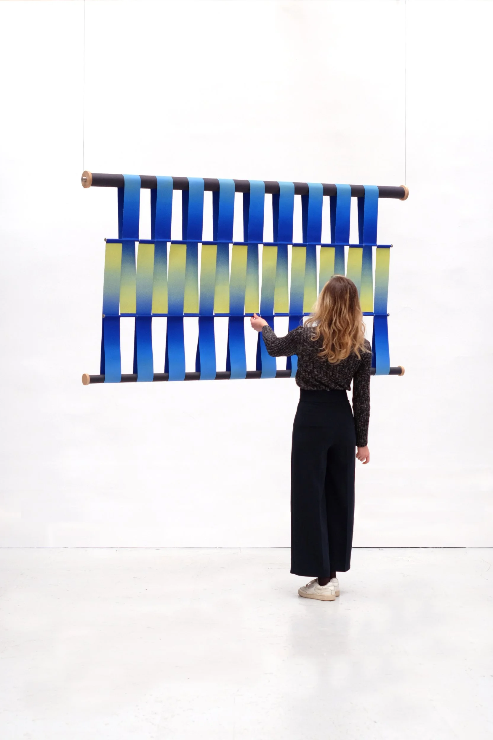 Used as a screen, Mirage is a soft wall that enables people to take control of their own architecture. Thanks to its intermediate scale, it can be used to divide spaces for temporary uses and constantly evolving needs. You can simply open or close it by hand and change the colours through manipulation. The textile provides a delicate touch, and the range of colours allows people to influence their spaces and feelings. Mirage comes in two sizes to fit architectural standards.